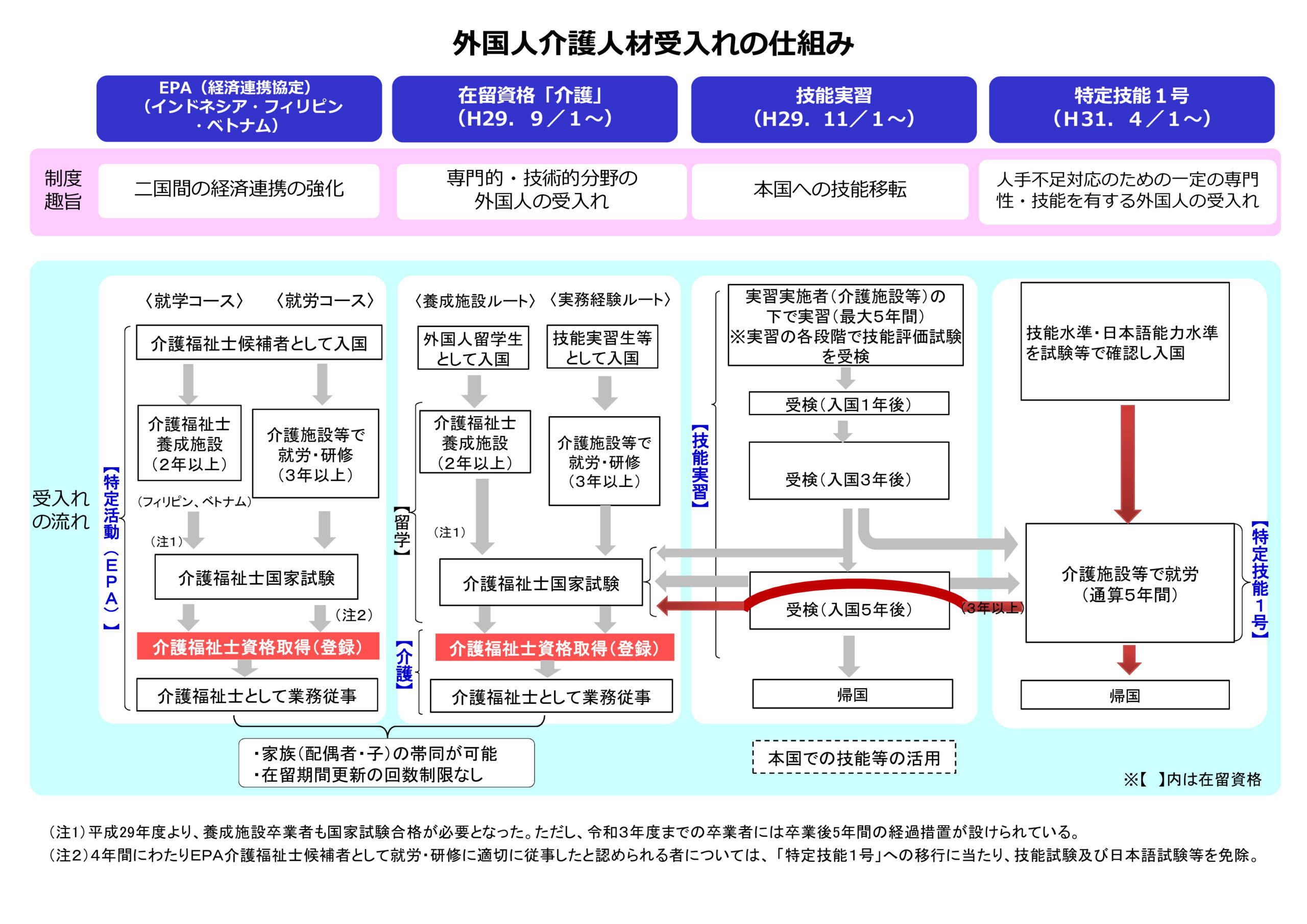 外国人介護職員を受け入れるには現在4つのルートがあります。
